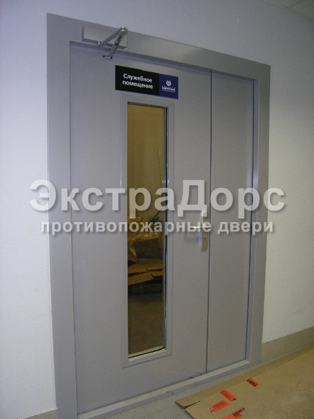Двухстворчатая противопожарная дверь с прямоугольным стеклом в Дзержинском
