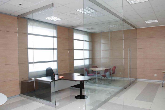 Противопожарная безрамная дверь в переговорную в Дзержинском